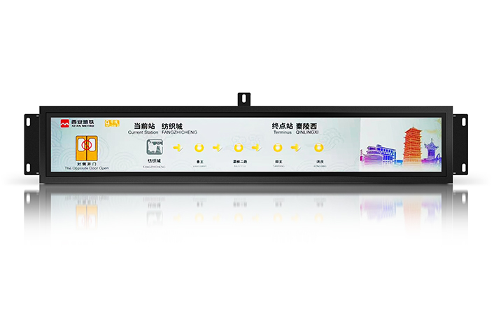 lcd條形屏車內(nèi)導(dǎo)乘牌28.6寸,內(nèi)嵌4GByte存儲器,可外擴32G存儲卡,顯屏的信息控制采用485通訊。以公交自身運營發(fā)展需要為前提,能夠滿足一機多條公交線路站點信息服務(wù)的系統(tǒng)設(shè)備。其主要功能是能夠根據(jù)車輛實際運營狀態(tài),按預(yù)設(shè)程序智能獨立運行,正確表達(dá)車輛當(dāng)前運行線路名稱、首末班發(fā)車時間、運行方向、進(jìn)出站等實時信息情況,并按需可在儲存的多條公交線路站點信息間切換選擇,同時具備對預(yù)設(shè)圖片、視頻信息進(jìn)行循環(huán)播放,以滿足車輛靈活快速地跨線調(diào)度運行的需要。